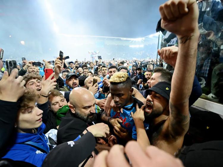 记者寒冰报道 客场1比1战平乌迪内斯,那不勒斯提前5轮夺得意甲冠军,追平了3分制时代以来意甲最快夺冠纪录。尽管比预期的时间晚了一周,也错过了上周末主场夺冠的完美时刻,但迟到终归要到。那不勒斯的马拉多纳球场早已是狂欢的海洋。打破北方三强长达22年的垄断,让阔别了33年的意甲奖杯,重新回到这座充满奇迹的城市。这是那不勒斯足球名副其实的伟大复兴,当年那不勒斯人为马拉多纳疯狂,如今他们拥有的不再只是一个偶像!能够终结北方三强对意甲冠军垄断,这支那不勒斯缔造的显然不是莱斯特城那样一路爆冷的逆袭神话,而是实力、状态和风格同样遥遥领先的实至名归。那不勒斯球员总身价(6.29亿欧元)高居意甲榜首,领先米兰双雄几乎1亿欧元,超过尤文图斯2亿欧元,领先北方三强的优势是数量级的。本赛季那不勒斯开局就一路狂飙,甚至一度在积分榜上领先优势多达19分,这是连马拉多纳当年都不曾做到的奇迹。那不勒斯联赛积分最高(33轮80分),胜场最多(25场),负场最少(3场),得失球(69比23),射手榜(奥斯梅恩,22球),助攻榜(克瓦拉茨赫利亚,10次)均排名意甲榜首,球队整体表现全方位无死角领先北方三强和罗马双雄这些竞争对手,冠军含量毋庸置疑。虽然最近因欧冠拖累,连续6场仅得1胜,但过于巨大的领先优势足以确保这个南方豪门重温阔别33年的冠军旧梦,告慰马拉多纳的在天之灵。巧合的是,那不勒斯首次夺冠的1986/87赛季,正是马拉多纳带领阿根廷队夺得世界杯之后,这次又是阿根廷队夺得世界杯之后。马拉多纳和阿根廷的蓝色,与那不勒斯的蓝色有着妙不可言的缘分。遍布全城的马拉多纳形象无处不在,如今那不勒斯的工匠们开始为拿到意甲冠军的新英雄们塑造了新的雕像:奥斯梅恩、克瓦拉茨赫利亚、迪洛伦佐、金玟哉、洛博特卡、安吉萨、梅雷特……当年的那不勒斯几乎全靠马拉多纳,如今则是三线都能傲视意甲的冠军团队:奥斯梅恩与克瓦拉茨赫利亚组成了五大联赛最高效的进攻组合之一,队长迪洛伦佐、中卫金玟哉和门将梅雷特是意甲失球最少的防线核心。首次夺得五大联赛冠军的斯帕莱蒂主打433攻势足球更是赏心悦目,共同让那不勒斯成为本赛季意甲的现象级球队。为了这个阔别33年的意甲冠军,德劳伦蒂斯家族从2007/08赛季升级后就不断投入,15年来砸下在球市上投资了高达10.59亿欧元,包括奥斯梅恩(7500万欧元)、洛萨诺(4500万)、马诺拉斯(3600万)这样的高价球员,才有了本赛季一路强势领跑的爆发。继史无前例杀入欧冠8强之后,领先16分提前5轮夺冠均创造了马拉多纳时代都不曾有的队史最佳成绩。1984年那不勒斯倾其所有,从巴萨以队史最高纪录转会费签下马拉多纳。阿根廷球王用了3年将这支当时险些降级的南方球队,力压北方三强首次夺冠,开创了那不勒斯队史第一个黄金时代。连续5年进入意甲三甲,2次夺得意甲冠军,1次拿到联盟杯冠军,几乎凭一己之力让积贫积弱的那不勒斯能与强大的北方三强分庭抗礼。但这次那不勒斯的复兴经历了长达15年的漫长时间,从2007/08赛季重返意甲开始,德劳伦蒂斯家族不断追加投资,那不勒斯2010/11赛季以来近13个赛季9次进入三甲,4次成为亚军,这才有了本赛季一飞冲天的底蕴。冠军的来之不易还在于:为了维持过高的球市投入,那不勒斯在此期间不得不通过出售拉维奇、卡瓦尼、伊瓜因、若日尼奥、哈姆西克、阿兰、贝尔蒂和库利巴利等明星球员,填补财政亏空。15年的漫长积累,带来的是意甲球员身价最高的阵容,奥斯梅恩和克瓦拉茨赫利亚垄断意甲球员身价榜前两位,身价前25位还有5名那不勒斯球员,阵容实力配得上冠军头衔。15年来,从带队重返意甲的雷哈,到马扎里、贝尼特斯、萨里、安切洛蒂、加图索和这次终于圆梦的斯帕莱蒂,那不勒斯不是运气爆棚的莱斯特城,而是厚积薄发终成正果,实现了从球场外到球场内的质变。这次夺冠是否能让那不勒斯成像33年前的马拉多纳时代一样,与北方三强分庭抗礼,形成3+1的豪门格局?至少,这个意甲冠军是改变格局的起点。那不勒斯已连续12个赛季参加欧战,即将第8次参加欧冠,为俱乐部像马竞那样依靠稳定表现改变西甲格局一样奠定了基础。尽管地处意大利贫穷的南方,那不勒斯还是实现赛季营收突破2亿欧元,比2010/11赛季翻倍的奇迹。本赛季因杀入欧冠8强,甚至能与北方三强之一的AC米兰比肩。那不勒斯的夺冠,本质上是建立在足够与北方三强竞争的财政基础和球队实力上。与30多年前不同的是,当年那不勒斯依靠的只有马拉多纳,今天依靠的是空前强大的资本和团队。随着那不勒斯的稳定崛起,再加上米兰双雄逐渐复苏,人们仿佛又看到了1990年代意甲“小世界杯”时代的盛况。那不勒斯的伟大复兴不仅属于这座马拉多纳的城市,更属于整个意大利足球。