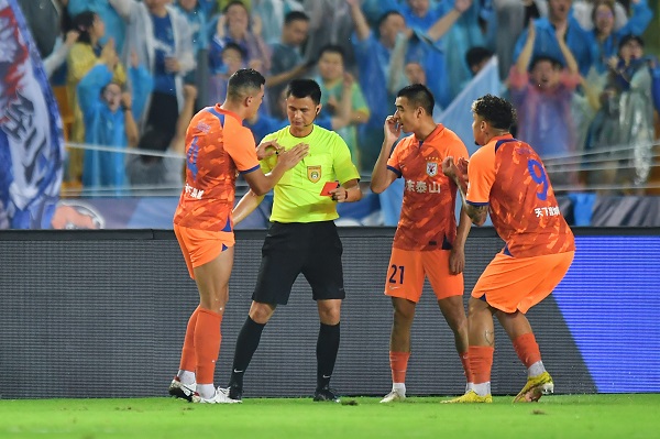此外,主裁判李海新第一时间判罚贾德松黄牌,随后VAR介入之后,李海新坚持了判罚,但VAR又一次介入以后,李海新却又选择了去场边亲自观看视频回放,最终更改为红牌,由此很多泰山球迷也对这次VAR程序提出了质疑。