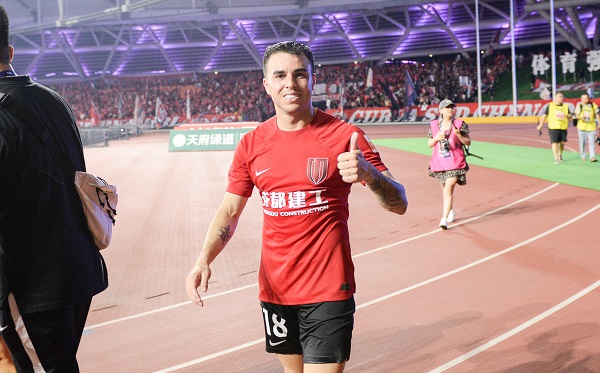 第61分钟,比分仍是3比1,成都基本锁定胜局,徐正源用安德里戈换下了帕拉西奥斯。和队伍相处不到48小时,巴西人就迎来了加盟成都蓉城的首秀。刚出场3分钟,大连人的一次全线压上进攻被断下,球权给到了安德里戈,他首先是在弧顶处右脚长传精准找到了前场的金敃友,在金敃友和费利佩配合的时候,他已来到了禁区附近,正好接到费利佩的回做。都以为他会射门时,他又用左脚将球快速给回费利佩,三个人的流畅配合,让费利佩成功完成了帽子戏法。3分钟之后,安德里戈险些收获首秀进球,只是射门被横梁阻挡。