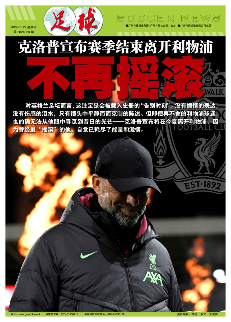 离开利物浦,对克洛普而言是如释重负的解脱,但对利物浦上下而言却是无比失落。一个堪称伟大的克洛普时代落幕,如何找到像他这样充满激情的教练继续辉煌?如何找到在缺乏球市投入情况下,还能与曼城、皇马作战的“摇滚教练”?尽管渣叔一再呼吁不希望球迷提前唱响关于自己的歌曲,不想让此后的比赛全部变成自己的告别演出,但未来4个月,这家俱乐部的所有工作人员和他们的所有拥趸,毫无疑问地会激起为克洛普作最后一搏的强烈情绪,用尽可能多的奖杯为一个时代的终结画上最完美的句号。