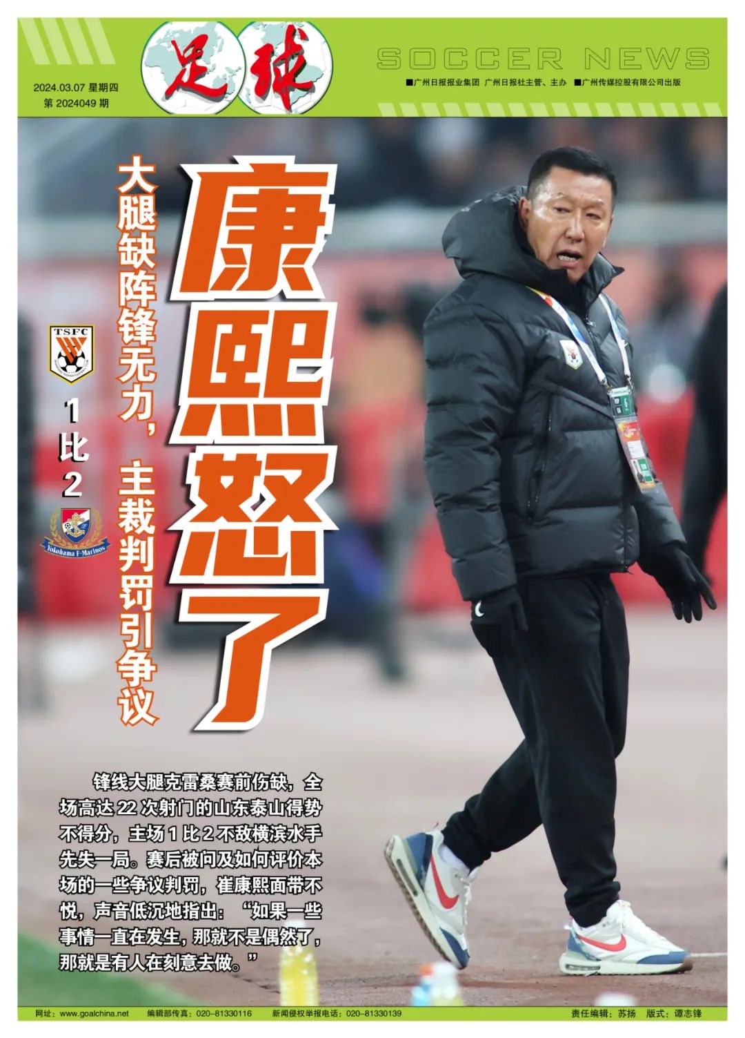 记者陈永报道 尽管进入了替补名单,但轻伤在身的克雷桑最终未能出场,在这种情况下,全场高达22次射门的山东泰山得势不得分,最终1比2不敌横滨水手。赛后发布会上,崔康熙关于本场部分判罚一番“无言以对”的论述引发了外界关注。3月13日韩国老帅将随队客战横滨水手,一球之差,亚冠四强名额的归属悬念仍在。