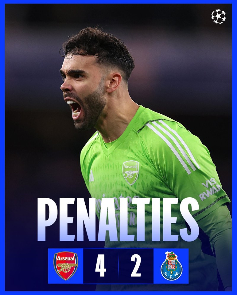 萨卡、哈弗茨、热苏斯、厄德高连续错失进球良机,下半场第67分钟厄德高的进球也因哈弗茨冲撞门将在先被判无效。点球大战阿森纳将命运交给门将拉亚之前,他就已经多次挽救了枪手。上下半场他就已先后扑出波尔图两次绝佳的射门,力保龙门不失。点球大战中拉亚第1轮判断错误后,连续3次方向判断正确,第2轮和第4轮先后扑出文德尔和加雷诺的点球,阿森纳队友则4罚全中,幸运晋级8强。