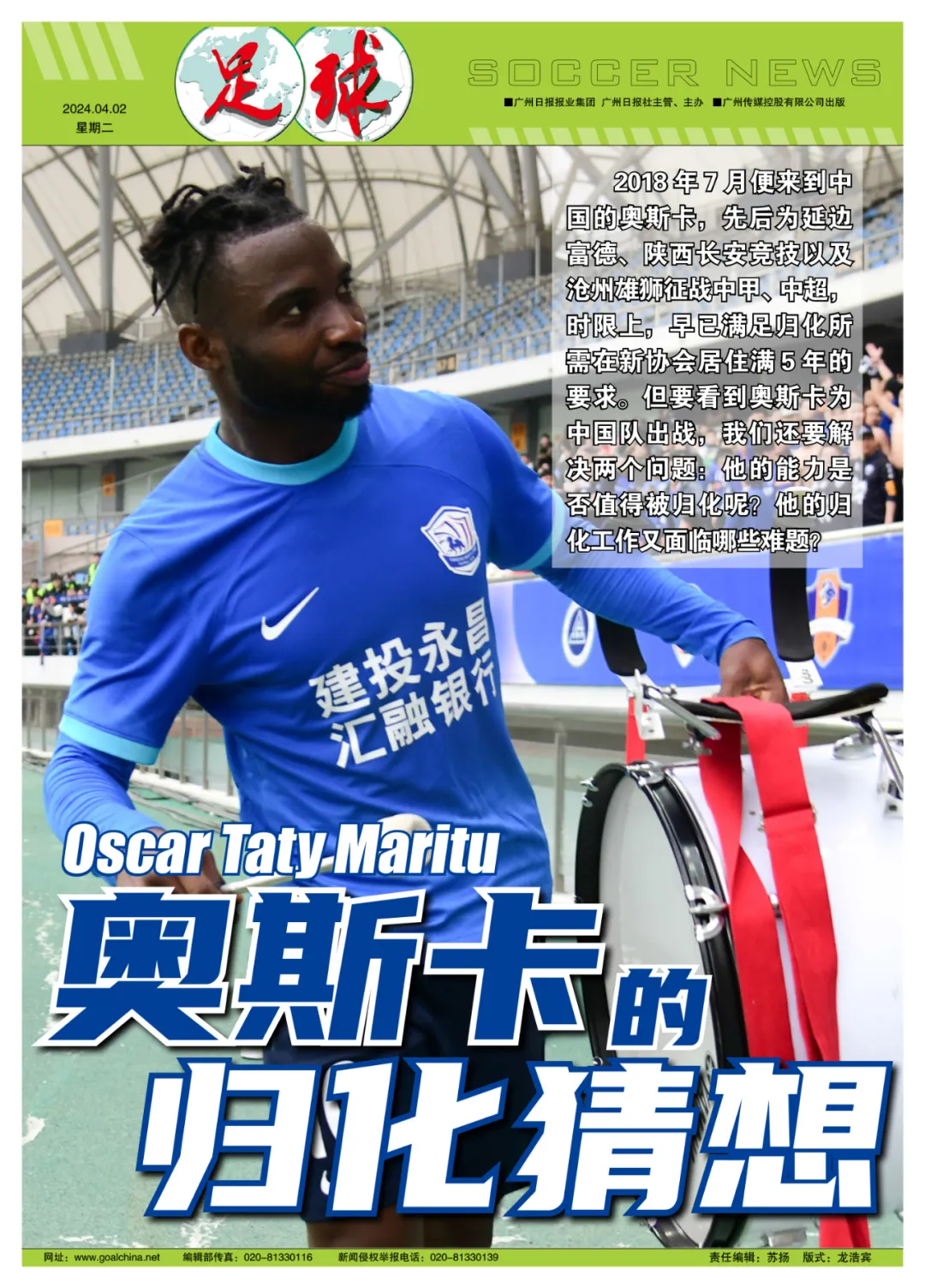 记者陈永、寒冰报道 第二轮面对成都蓉城打进制胜球,帮助球队拿到赛季首胜;第三轮读秒绝平深圳新鹏城,又为球队保住1分——中超战罢三轮,沧州雄狮前锋奥斯卡·塔蒂·马里图,成了外界热议的焦点外援之一。当然,除了2球抢4分的高效表现,中国球迷更关心的是这位今年8月才满25岁的民主刚果射手,成为下一位中国归化国脚的可能性。