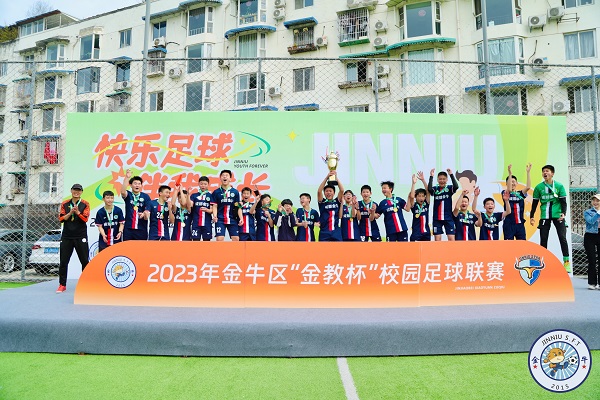 “金教杯”是金牛区校园足球领域创办最早的核心赛事。该项赛事2016年创办,当时有44校的99支队伍参赛,共计进行了341场比赛,参赛球员1200人。今年3月举行的2023年金教杯是第八届,参赛人数接近4000人。“金教杯”校园足球联赛,由于规模大参赛队伍多,已成为有超、甲、乙升降级的三级联赛。“金教杯”的高中组和初中组都是八人制;小学组则是五人制。