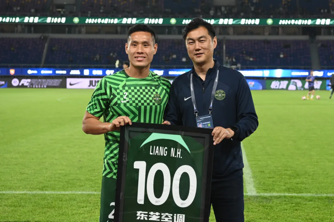 这场比赛,对港脚梁诺恒来说有着特殊的意义,这是他代表浙江队踢的第101场比赛。赛前,总经理焦凤波为他送上了百场纪念球衣。