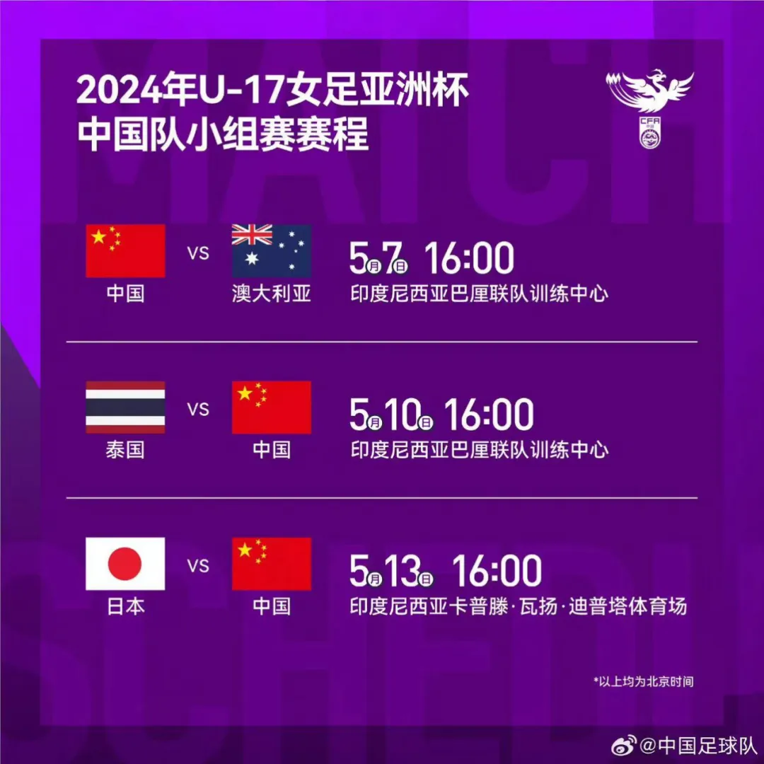 记者王伟、实习记者黄昊报道 U17女足亚洲杯将于5月6日至19日在印度尼西亚的巴厘岛进行。本届亚洲杯共有8支球队参加,中国队和澳大利亚、日本、泰国同分一组,赛事前三名将获得今年10月在多米尼加举行的U17女足世界杯入场券。5月7日16时,中国U17女足将在印尼巴厘联队训练中心迎来首个对手澳大利亚队。