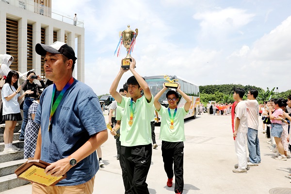 时间回到6月17日,在广师大白云校区,全校2000多名师生用1000支玫瑰组成迎宾大道,在通往图书馆的路上夹道欢迎冠军归来。