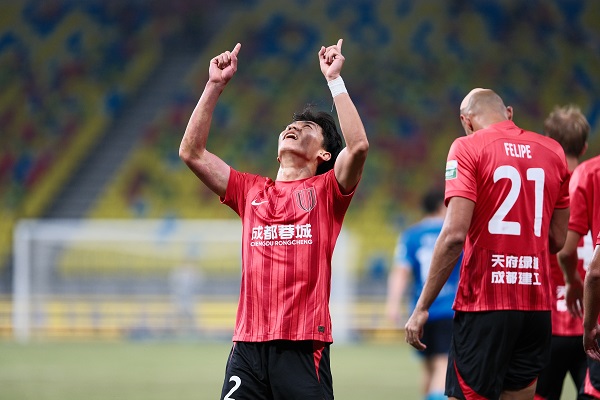 蓉城喜欢这样的打法。对手的压上,给了蓉城太多打身后的空间。甘超用一记丝毫不讲理的远射,在开局第六分钟就率先帮助球队打开局面,为他助攻的是帕拉西奥斯。上半场临近结束时,帕拉西奥斯与队友配合后射门,皮球直入死角。