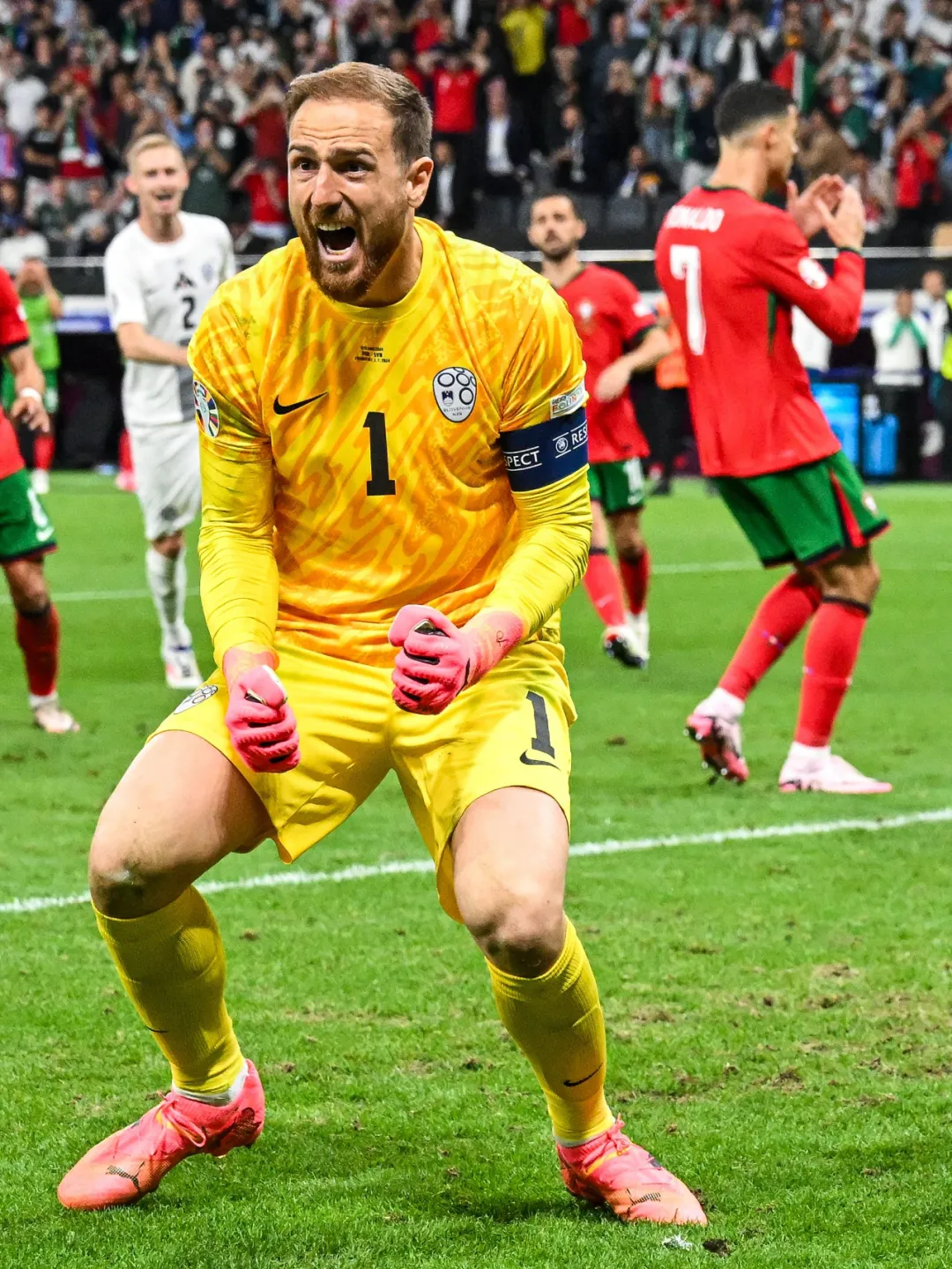 斯洛文尼亚籍的欧足联主席切费林亲临现场,首次出战大赛淘汰赛的斯洛文尼亚没有辜负他的期待,他们在120分钟时间顶住了葡萄牙多达20次射门。门神之夜的前105分钟,属于奥布拉克,这位7次西甲最佳门将得主(5次萨莫拉奖,2次西甲官方大奖)全场贡献6次扑救,先后将C罗的任意球和第89分钟的单刀球拒之门外。