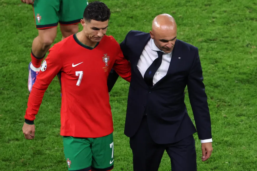 4天前是佩佩安慰因罚失点球痛哭的C罗,4天后轮到释然的C罗安慰同样痛哭的佩佩。赛后转播镜头一直紧跟C罗,记录下了他的无奈、怅然和平静。他接受了格列兹曼短暂的拥抱,转瞬即逝的笑容更像是尊重对手的肌肉记忆。C罗一路缓慢而平静地走进更意思是通道,与两年前在卡塔尔世界杯衣袖擦拭泪水形成鲜明对比。