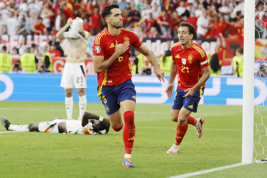 下半场纳格尔斯曼率先出招,维尔茨和安德里希换下萨内和埃姆雷·詹。但把握住机会的却是西班牙人,第51分钟亚马尔高速推进到禁区前横传,奥尔莫插上推射破门。亚马尔成为最年轻的1/4决赛出赛者以及首位20岁以下就能在单届欧洲杯3次助攻的球员。奥尔莫成为1950年后大赛首次攻破东道主大门,以及1964年以来首位欧洲杯连场破门的西班牙球员。