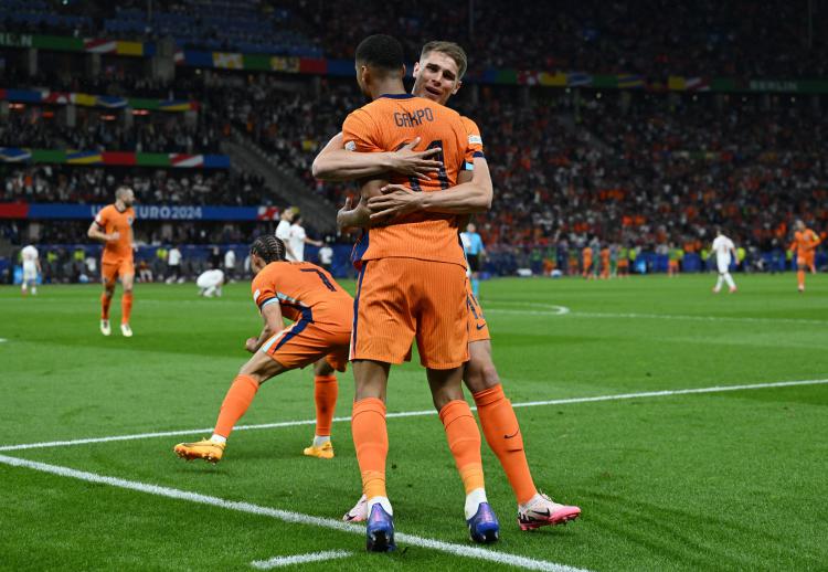 记者寒冰报道 在有着350万土耳其裔移民后裔的德国进行的欧洲杯1/4决赛,柏林奥林匹克球场的主色调成了红白色——本届杯赛土耳其能以黑马姿态一路杀入8强,在土耳其球迷营造的主场氛围功不可没。但星月军团没有把握机会,在阿卡伊登率先进球大好局面下,米尔迪尔的乌龙球和荷兰中卫德弗赖的进球,让土耳其进四强最后的希望破灭,比赛最后阶段荷兰队众志成城的防守,也让土耳其人绝望。时隔20年,橙色风暴再次刮入欧洲杯半决赛。此役吸引了戴维斯、西多夫、斯内德等荷兰足球名宿,名流之中还有“金刚狼”扮演者休·杰克曼和土耳其总统埃尔多安亲临现场督战。这是荷兰和土耳其首次在大赛(欧洲杯+世界杯)对决,两队最近1次交手是2021年9月世界杯预选赛,荷兰队主场6比1狂胜,因而心理优势明显。不过,如今两队都已更换主帅,1988年欧洲杯冠军队成员,两度执教荷兰队的科曼,比首次执教国家队,没有任何国家队冠军履历的蒙特拉经验丰富许多。柏林奥林匹克球场涌入超过7万观众,创本届欧洲杯单场观众人数最高纪录。还剩3场比赛的前提下,德国欧洲杯超过2016年的法国,创欧洲杯史上单届现场观众人数最多纪录。荷兰队精英尽出,土耳其主力中卫德米拉尔因做出违规手势被欧足联禁赛两场,但另一位主力中卫阿卡伊登和中场核心恰尔汉奥卢解禁复出。荷兰主帅科曼排出与1/8决赛完全相同的首发阵容,蒙特拉更换了双后腰和1名中卫,防守端变化为土耳其队的失败埋下了伏笔。不过,土耳其队居然还是率先破门。皇马小将居莱尔第35分钟右路传中,插上禁区助攻的中卫阿卡伊登头球破门。土耳其5场比赛4次先进球,8个进球4个来自后卫,本届欧洲杯24队最多。荷兰队欧洲杯5场有3场先失球,是1994年世界杯(3次)以来大赛最多。失球后科曼率先换人,半场后派上高中锋韦霍斯特替下右边锋贝尔温,掌握了禁区空中优势。第70分钟荷兰队战术角球奏效,同样是中卫德弗赖头球扳平比分,这也是欧洲杯历史首次单场两位中卫进球。土耳其此役运气实在不佳,居莱尔下半场曾有任意球中柱,第76分钟右后卫米尔迪尔在加克波压迫下不慎自摆乌龙,这是本届欧洲杯第10个乌龙球,也是荷兰队在欧洲杯历史第4次收获乌龙球,仅次于法国(5次)。最后时刻土耳其队不断射门,荷兰队防线集体门前封堵,范德芬、德弗赖、门将费尔布吕亨和邓弗里斯先后挡出必进射门,终于保住胜局。赛后科曼和中卫队长范戴克均盛赞球队最后时候的奋勇精神,让荷兰队时隔20年再入欧洲杯4强。荷兰队是继葡萄牙(2016年)之后,欧洲杯第2支以小组第3名身份进入4强的球队。同组的小组第2(法国队)、第3均进入4强,也是欧洲杯历史首次。荷兰也是大赛(欧洲杯+世界杯)历史上第5支小组第3身份进入4强的球队,此前还有世界杯上的比利时(1986年)、阿根廷(1990年)和意大利(1994年)。其中最近3次阿根廷、意大利和葡萄牙都杀入了决赛,对荷兰球迷而言可是好兆头。随着荷兰队淘汰土耳其,本届欧洲杯再无黑马。即时欧洲排名前5名球队有4支进入4强,世界排名均在前7名之列。2016年威尔士(26位)是最近欧洲杯4强世界排名在前10位之外的球队,上届欧洲杯虽然丹麦队被视为黑马,但事实上当时丹麦队世界排名第10位,也是前欧洲杯冠军。欧洲杯被四大夺冠热门包揽四强,依然还是实力打底的豪门游戏。值得一提的是,荷兰队此前5次进入欧洲杯4强,除了1988年夺冠,1976年(捷克斯洛伐克)和1992年(丹麦)荷兰队半决赛均输给当届冠军。但2000年(意大利)和2004年(葡萄牙)半决赛淘汰荷兰队的球队,最终都屈居亚军,2014年世界杯(阿根廷)也是如此。而这次,荷兰队决赛对手轮到了上届亚军的英格兰队。