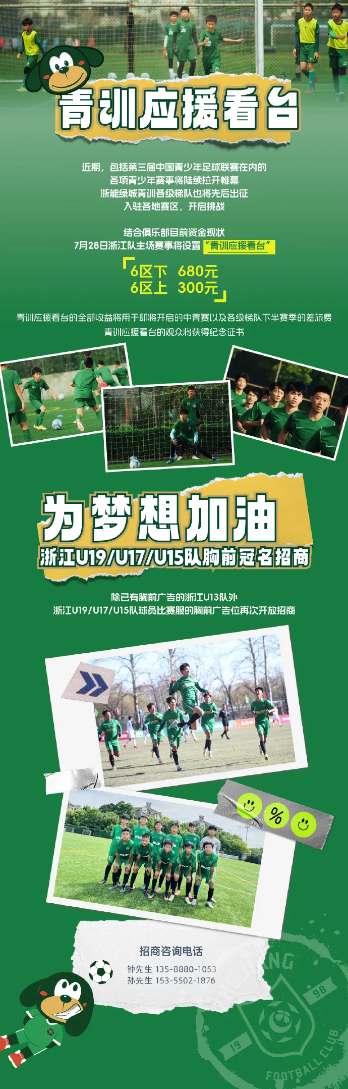这次即将出去参赛的是浙江俱乐部的U13和U15两支队伍,他们将要奔赴吉林和沈阳参加全国的第三届中青赛赛事。从小组赛到淘汰赛阶段再到决赛,最长需要28天的时间。结合去年的参赛费用标准,在尽量节约的前提下,两支队伍一个月的参赛经费也需要至少50万作为保障。上赛季浙江队的在全国性比赛中都进入了前四,如果想要鼓励球队今年再创新高,本应该在去年的基础上追加一部分费用做保障,现状的无奈,只能让他们想出在7月28日这一天运营“青训应援看台”的办法,以期凑够可以支撑打到总决赛的最低费用标准,以示俱乐部不放弃青训理念,支持他们战斗到底的决心。