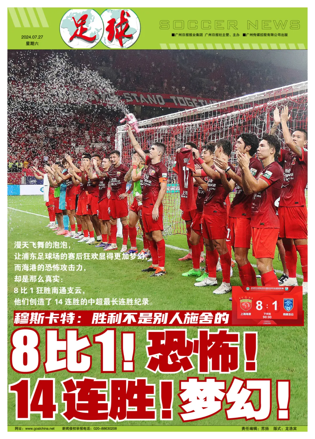 记者程善报道 一场“恐怖”的8比1,海港在主场再次完成自己面对南通支云的“最低消费”!狂胜对手后,海港本赛季连胜纪录已经达到14场,刷新了中超连胜纪录。