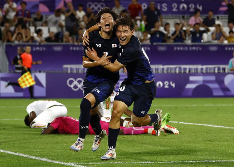 这也是继1964至1968年的日本队之后,有亚洲球队第三次连续从奥运会男足比赛小组出线;还是继2012年伦敦奥运会的韩国队之后,有亚洲球队第二次提前一轮小组出线。亚洲范围内,12次参加奥运会决赛圈的日本队第6次从奥运男足比赛小组出线,依旧力压韩国(4次)保持亚洲球队在奥运会男足比赛小组出线次数最多的纪录。与此同时,首战2比1爆冷击败乌克兰国奥的伊拉克国奥,1比3不敌南美劲旅阿根廷,同样有出线希望。乌兹别克斯坦虽然小组赛前两场全负出局,但场上表现可圈可点。在U23年龄段的奥运足球领域,日本队依然是亚洲领先,但伊拉克和乌兹别克斯坦亦有足以和欧美非洲劲旅较量的实力,亚洲足球的进步在巴黎奥运会也是有所展现。日本国奥是巴黎奥运会唯一没有超龄球员的参赛队。虽然日本足协曾有意招募远藤航,町田浩树,守田英正,板仓滉,富安健洋,谷口彰悟等超龄球员参赛,实现时隔56年再次在奥运男足比赛夺牌的目标,但因球员所在俱乐部拒绝放人或处理转会事宜只能作罢。此外,日本还有多达10名U23适龄球员无法参赛,包括亚洲球员身价第一的久保建英、日本成年国家队主力门将铃木彩艳、同样已为成年国家队出过场的前锋铃木唯人、即将加盟英超南安普敦的松木玖生等,仅以U23阵容在巴黎的都只能算是日本“国奥二队”。即便如此,这支日本“国奥二队”仍有多达7名旅欧球员,以U23亚洲杯冠军队为班底,取得与3年前在东京一样出色的开局。当年为本土夺牌,日本国奥招募酒井宏树、吉田麻也和远藤航3位留洋名将压阵,10名旅欧球员包括久保建英、堂安律、富安健洋、板仓滉以及上赛季在英超布莱顿爆火的三笘薫,可谓精英尽出,也只是连续一球最小优势取得连胜。大岩刚教练的日本国奥不仅开局连胜,还合计攻入6球、全部零封对手,首战巴拉圭的5比0是日本在奥运男足比赛史上最大胜绩。提前锁定出线的日本国奥,1/4决赛大概率将对阵C组第二的埃及队。此前2012年奥运会日本队就是在1/4决赛击败埃及进入四强,被日本媒体视为有望重演伦敦奥运会冲击奖牌的历史。这也是日本男足去年至今继U17亚洲杯夺冠、U17世界杯小组出线后,U23年龄组取得同样的成就。U19年龄组稍逊一筹,也是U20亚洲杯四强,参加了U20世青赛。日本足球最近3届U17世界杯、U20世界杯和U23奥运会合计9次大赛仅有2次没有小组出线,校园足球与俱乐部青训相结合的青训体系成绩稳定,同样是亚洲领先。这支日本国奥队还有4名混血球员,包括队长中场藤田让瑠、门将小久保玲央,后者还在对马里国奥的比赛下半场扑出点球,力保球队零封对手提前晋级。6个进球4球被留洋球员包揽,藤田让瑠还助攻梅开二度。而这批日本国奥主力留洋球员还只是在荷甲、比甲中下游球队效力,足见日本留洋球员数量之多,质量之高。除了一直保持领先的日本足球,这次奥运会男足伊拉克和乌兹别克斯坦国奥表现也令人侧目。伊拉克国奥首战2比1力克去年U21欧青赛四强球队乌克兰,次战虽然1比3不敌南美劲旅阿根廷队。连场进球的超龄射手阿明·侯赛因是去年亚洲杯银靴,首战射入制胜球的20岁小将是知名的天才射手阿里·贾西姆,刚刚签约意甲的科莫,成为伊拉克队史第二位效力意甲的球员。这支伊拉克国奥都有6名留洋球员,后卫伊玛目、侯赛因·阿里、中场优素福·阿明、布林德·哈桑都是从瑞典、德国、荷兰加盟的归化球员。小组赛末战大巴黎球星阿什拉夫领衔的摩洛哥国奥,伊拉克国奥还有望重现2004年雅典奥运会小组出线最终拿到第四名的奇迹。巧合的是,当时小组赛末战对手也是摩洛哥。即便两战全负提前出局的乌兹别克斯坦国奥,也只是先后1球小负强大的西班牙和埃及国奥。作为首次参加奥运会的经历,足以昂首离开。这支中亚白狼军团也有多达7名留洋球员,意甲罗马前锋绍穆罗多夫为代表。乌兹别克斯坦足球近年青训成果井喷,U23亚洲杯连续4届进入4强,3次进入决赛1次夺冠;去年拿到U20亚洲杯冠军,U20世界杯进入16强;U17亚洲杯进入4强,U17世界杯进入8强,与伊拉克队一样,未来具备冲击亚洲足球第一集团的雄厚底气。