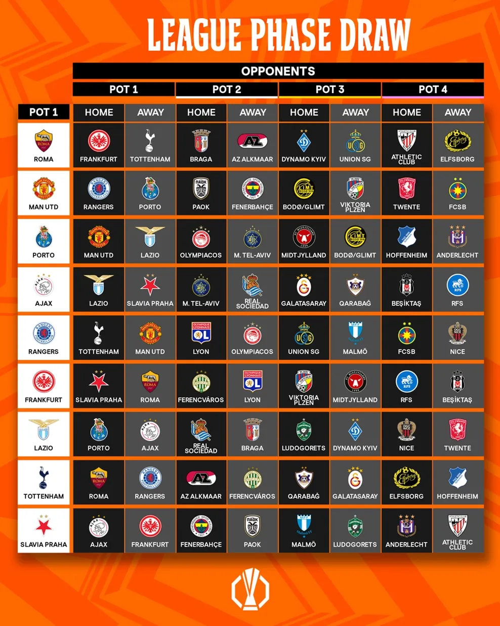 新赛季欧联杯夺冠赔率方面,抽签结束后热刺高居榜首(9/2),曼联(5/1)微弱劣势排名其后,罗马(8/1)位列第三。巴斯克双雄、波尔图、拉齐奥处于第二集团,穆里尼奥执教的费内巴切(21/1)在无缘欧冠正赛后,在欧联杯也并非夺冠热门,与法兰克福、尼斯、里昂和加拉塔萨雷均处于第三梯队。英国媒体普遍认为,新赛季滕哈赫除了要力争欧冠资格之外,竞争并不激烈的欧联杯将是荷兰教练主要的目标。