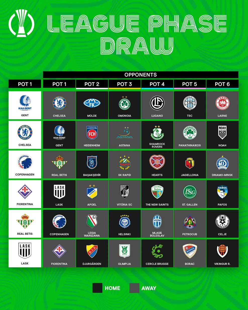新赛季欧联杯、欧协杯的赛制与欧冠的几乎完全一样,欧联杯也是36队分为4档,每支球队分别于每档两支球队比赛,合计8场比赛。而欧协杯36支参赛队分为6档而不是4档,联赛阶段每队仅有6场比赛。
