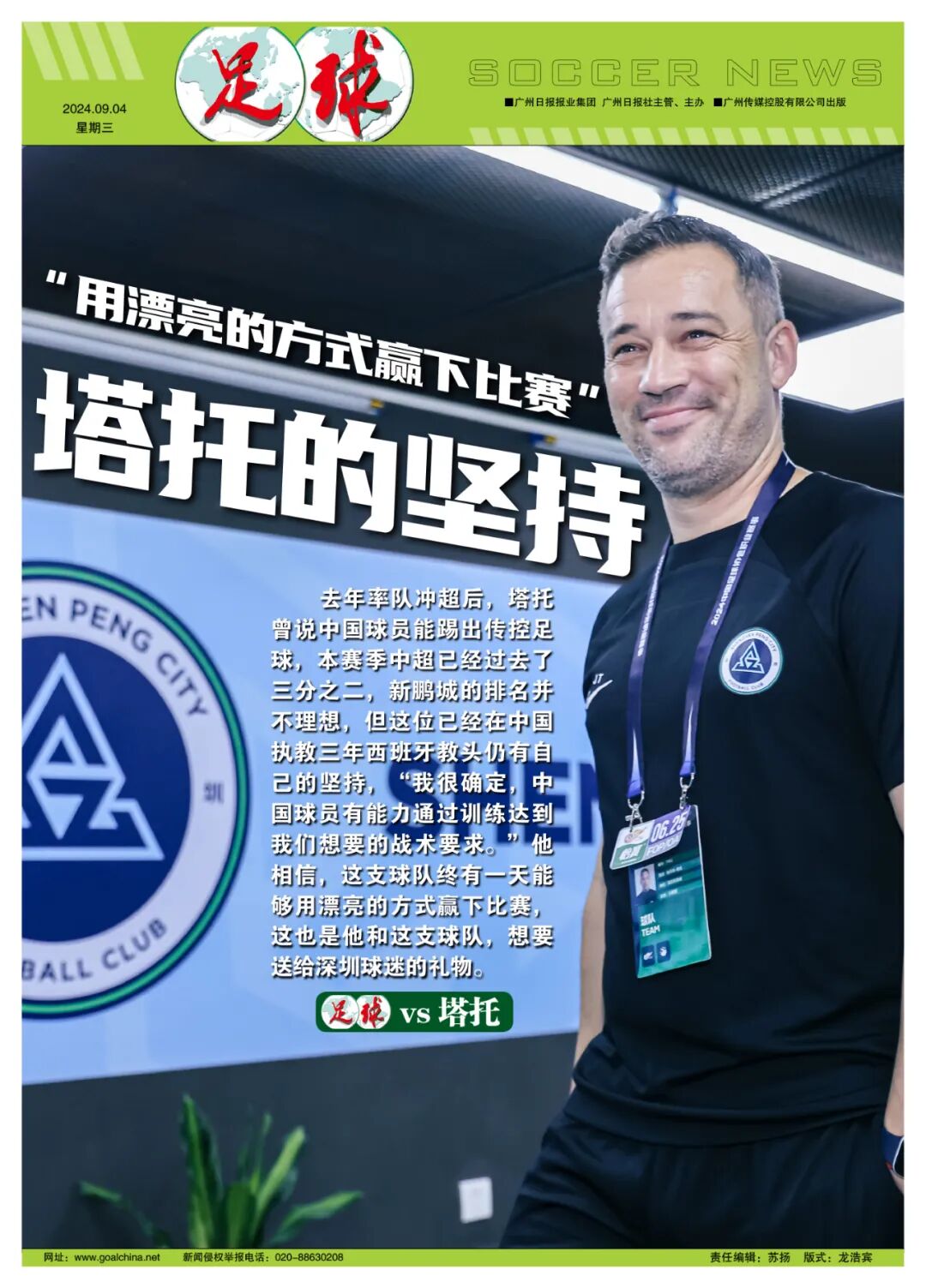 这个赛季,从四川异地搬迁到深圳的新鹏城,经历着所有升班马必经的成绩起伏。在巨大的成绩压力之下,塔托和他的球队依旧坚持传控打法,成为了中超赛场上风格鲜明的球队。如何将压力转换为成绩,在坚持比赛过程追求的同时赢下比赛,是塔托一直以来在研究的课题。