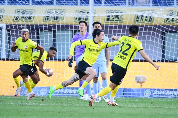 幸好,青岛西海岸的运气不错,他们很快回过神来,并在第21分钟获得了入球——内尔松边路突破助攻马特乌斯远射破门。这一次轮到新鹏城有点懵了,重新开球后没多久,他们的防线再次出现问题,被内尔松右路连过两人之后,横传中路助攻张修维破门,两分钟,青岛西海岸就扳平了比分。
