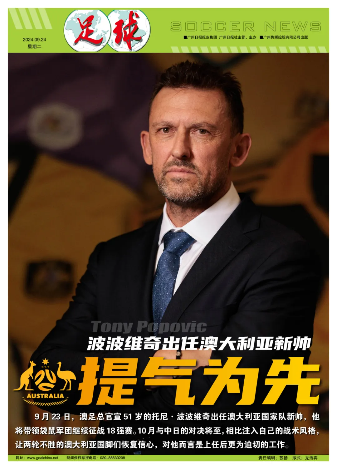 周一上任的波波维奇表示会让澳大利亚队重现辉煌,并将引入新的“更有活力”的足球风格。
