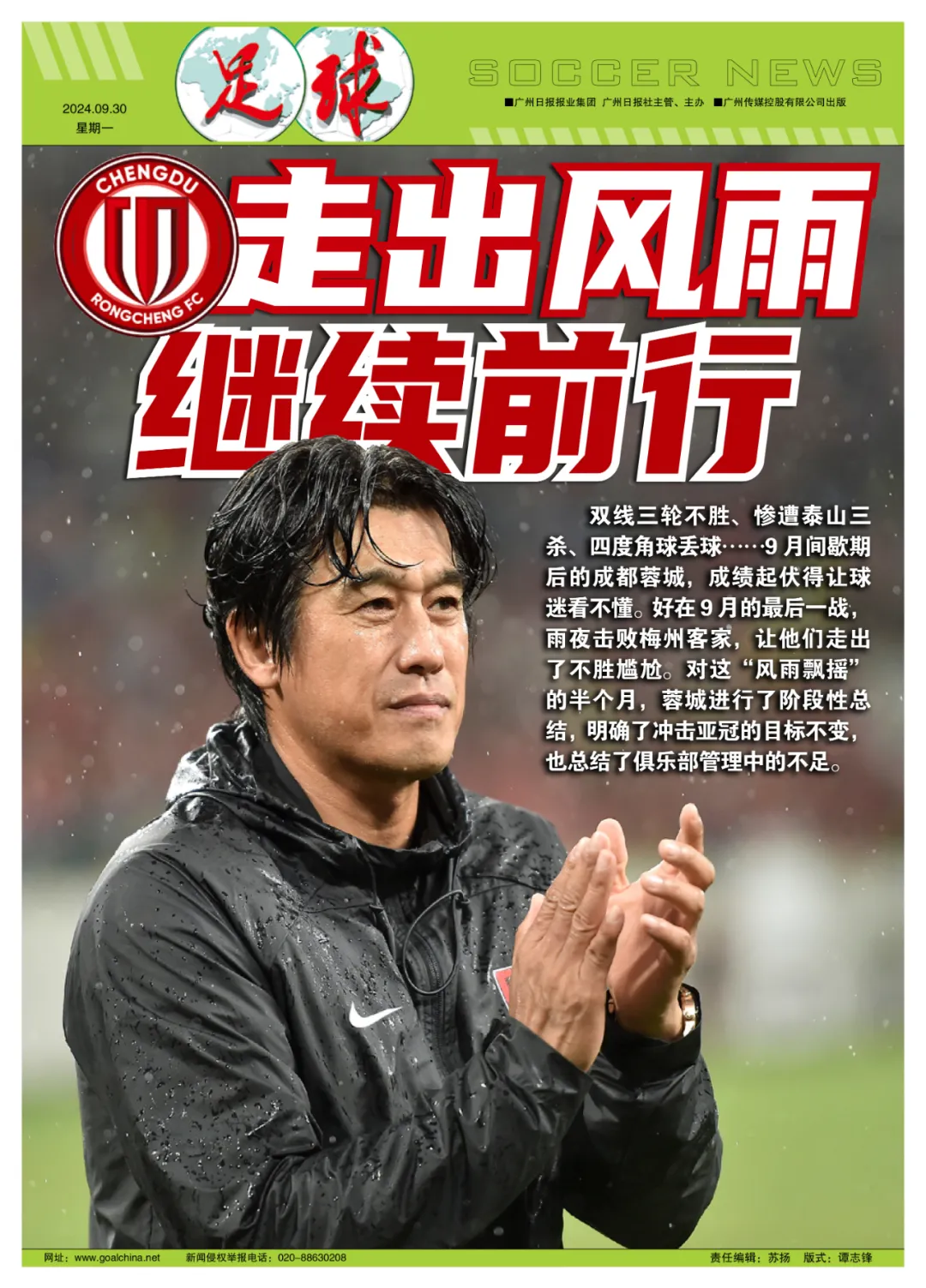 双线三轮不胜、惨遭泰山三杀、四度角球丢球……9月间歇期后的成都蓉城,成绩起伏得让球迷看不懂。好在9月的最后一战,雨夜击败梅州客家,让他们走出了不胜尴尬。对这“风雨飘摇”的半个月,蓉城进行了阶段性总结,明确了冲击亚冠的目标不变,也总结了俱乐部管理中的不足。
