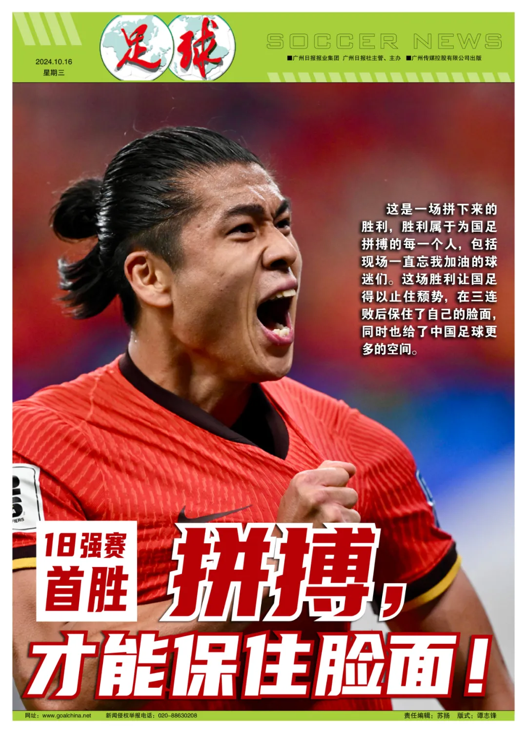 这是一场拼下来的胜利,胜利属于为国足拼搏的每一个人,包括现场一直忘情呐喊的球迷。三分到手,让国足得以止住颓势,在三连败后保住了自己的脸面,同时也给了中国足球更多的空间。