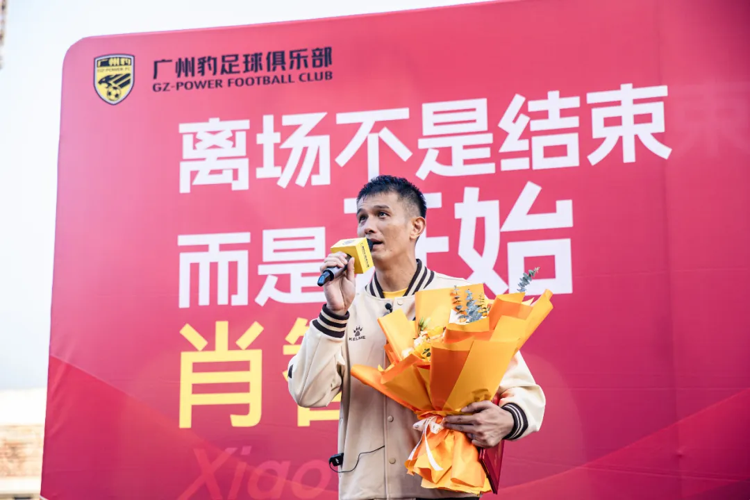 我们广州豹是2023年成立的新俱乐部,我特别感激俱乐部提供了这么好的平台,感谢俱乐部领导对我寄予厚望,我一直努力在日常的生活和训练当中成为榜样。这几年我一直在参加足球教练员培训班,现在是A级。俱乐部希望培养我担任教练员,继续足球人生的下半场。