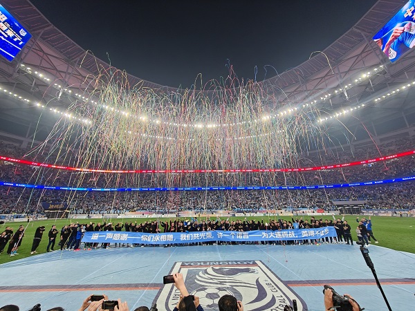 主帅李国旭表示:“英博冲超,是所有人努力的结果。时隔一年,英博让大连足球重回顶级联赛,希望大连足球一直稳定下来。感谢球迷的一路支持,前进吧,大连队!”
