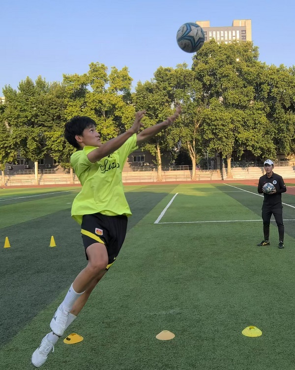 穆萨江现在在陕师大附中读初二,校队的训练质量不能满足需求,他现在跟着陕西省全运会队进行训练,虽然高一个年龄段,但穆萨江训练时完全能跟上节奏。另外,刘启圣还会给穆萨江开小灶,他和中巴国际的外籍教练,每周至少一次对穆萨江进行个人技术训练,包括移动当中处理球、射门包抄等,通常刘启圣和外教一人站一边,给穆萨江传球,让后者包抄打门,一练就是几个小时。除此之外,刘启圣还找来了运动表现专家,对穆萨江的体能、力量以及柔韧性进行定制化训练。穆萨江刚来西安的时候只有1.3米出头,如今已经超过了1.7米,个子窜起来了,身体力量也在逐步加强之中。
