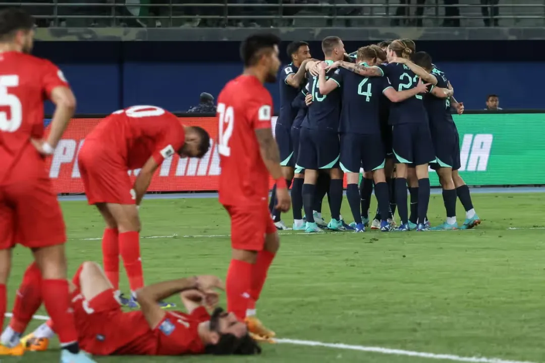 此役塔拉季奇变433,澳大利亚主帅波波维奇更换多达5名主力,停赛期满的南苏丹裔中锋延基复出同样梅开二度成为头号功臣。此役与巴林对印尼一役过程相似,但巴林从绝平变成被绝平。