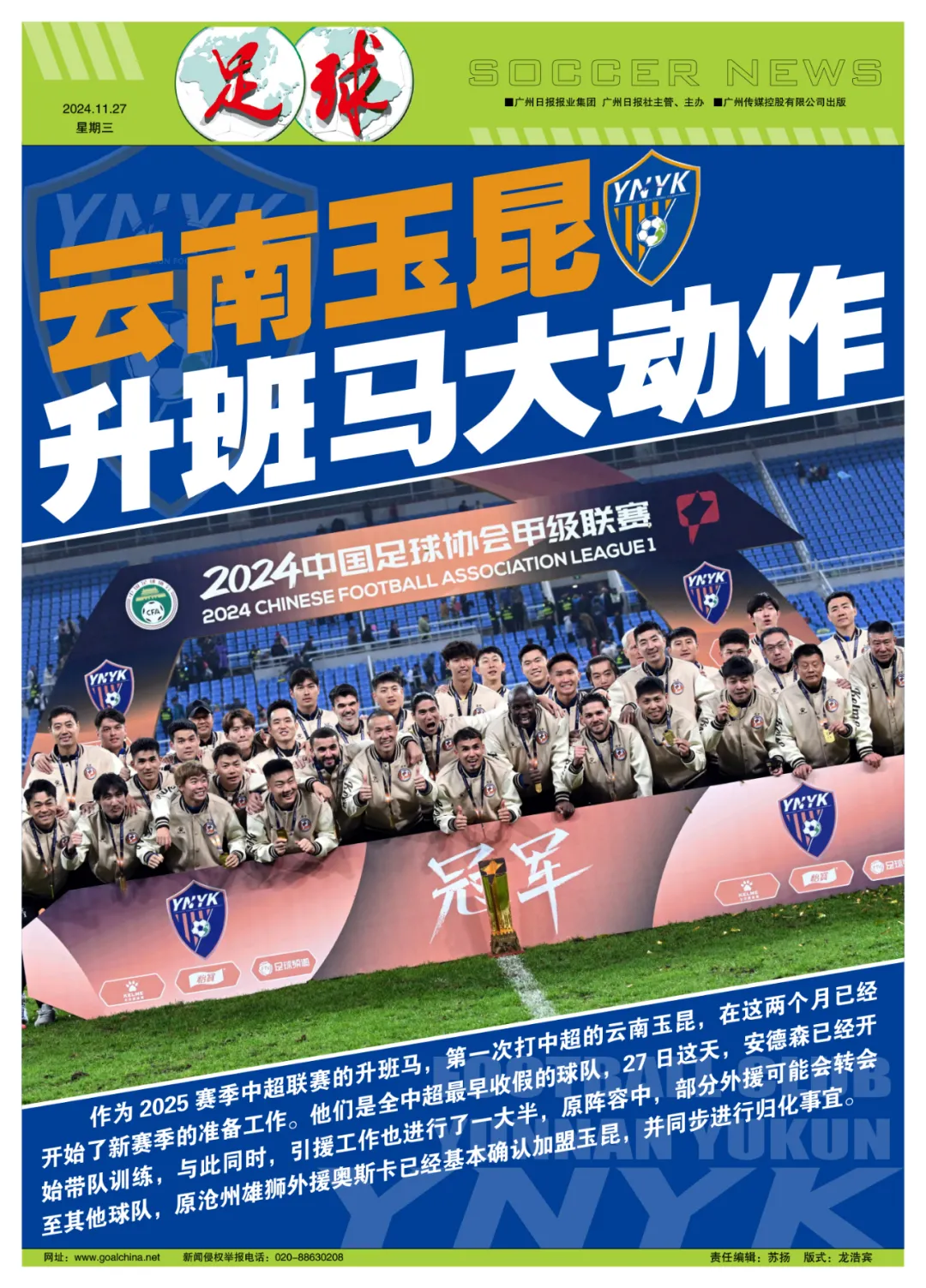 从冬季准备情况来看,升班马玉昆的动作十分迅速,也有归化球员这样的大动作,显示出他们对新赛季中超联赛的期待。当然,在准入工作完成之后,玉昆在引援上依旧有不小的空间去继续完善人员架构,力求在赛季前做好充分准备,用最大的努力来迎接他们的第一个中超赛季。