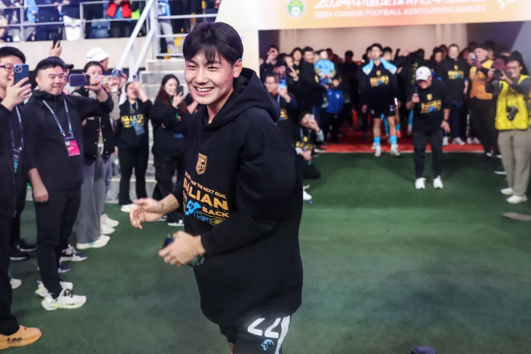 很开心,也很激动,感谢李导(大连英博主教练李国旭)把我从预备队提拔上来。这两年,平台越高,我在球场上就越激动,踢球也更开心了。