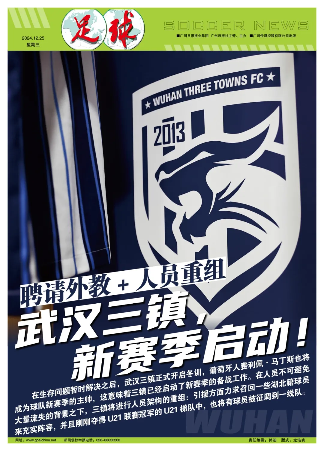 新赛季,原本呼声很高的陈洋最终无缘,据葡萄牙媒体《记录报》报道,葡萄牙籍主帅费利佩·马丁斯将在明年1月份赴武汉三镇上任,与武汉三镇的合同为期一个赛季。他还将带着一支全新的技术团队前往中国,该队的另外四名教练均为葡萄牙人,包括助教、守门员教练和体能教练。