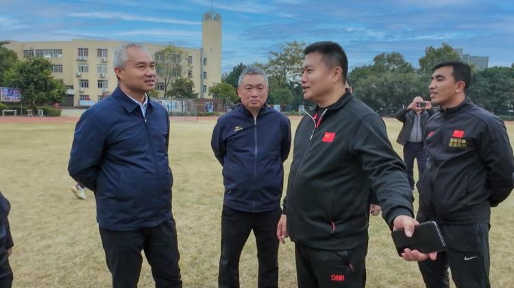 12月25日下午,谢昌晶还和番禺区委常委、组织部部长唐力明一起到大石中学观看深喀青少年足球基地队伍与大石中学足球队比赛。