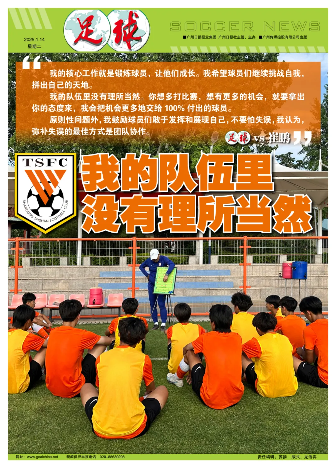 崔鹏:首先,我的核心工作就是锻炼球员,让他们成长。通过残酷的训练和难度更高的比赛,让这帮球员改变自己,提升自己,成为职业球员甚至国脚,这期间,我们有3个球员入选了国字号的集训营,还有几个球员上调了全运队,都证明了他们的付出和努力没有白费。后来,家长和我聊天的时候也说,这些队员拿了一个第四一个亚军,太不容易了。当然,这个队伍的成绩超乎想象,海滨也付出了很多心血,包括此前的比赛,给了这些队员很多机会,让他们有了一个高度,我希望或者去做的就是,球员们要继续挑战自我,不甘于自身的命运,拼出自己的天地。我们去年的成绩,家长很满意,但我们教练和球员不应该满意。