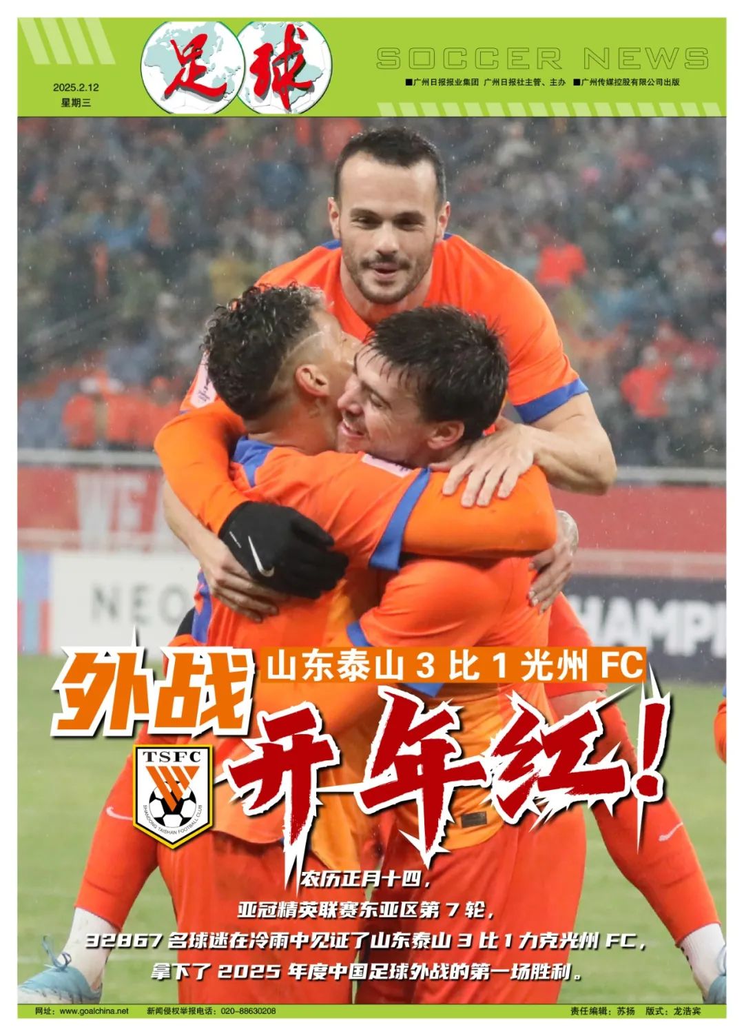 32867名球迷在冷雨中见证了泰山队的这场比赛,充分展现了泰山球迷对于亚冠的重视,这和泰山队对于亚冠的高度重视一脉相承。这场胜利,也是2025年度中国足球外战的第一场胜利。