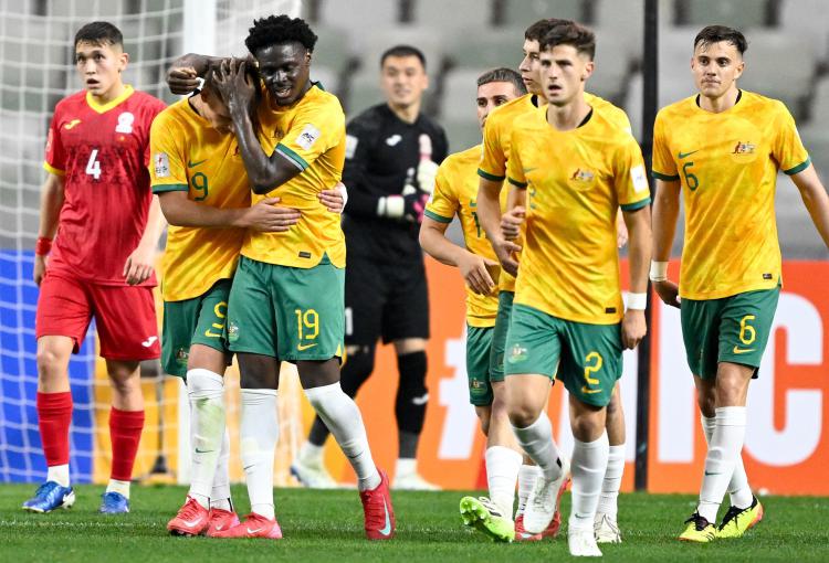 两位阿德莱德联昔日队友,不仅在本场比赛展现了相继接力补射的默契,而且同样交出了个人单点爆破完成进球的高分答卷,贡献了球队5个进球中的4个。除了两位高效前锋,左边锋巴多拉托在西悉尼流浪也已经踢上澳超,本场比赛他助攻本尼打进了球队的第二粒进球。澳大利亚队主力阵容之中,至少半数主力都有丰富的一线队比赛经验,如何避免吉尔吉斯斯坦那样开局被冲垮边路,是U20国足必须重视的问题。