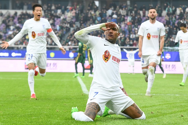 英博队员身体硬朗,两个边路打得比较快,获得的角球机会也很多,第57分钟,英博再次得到角球,表现活跃的卡兰加头球破门,这是英博在中超的首粒进球,扳平比分。