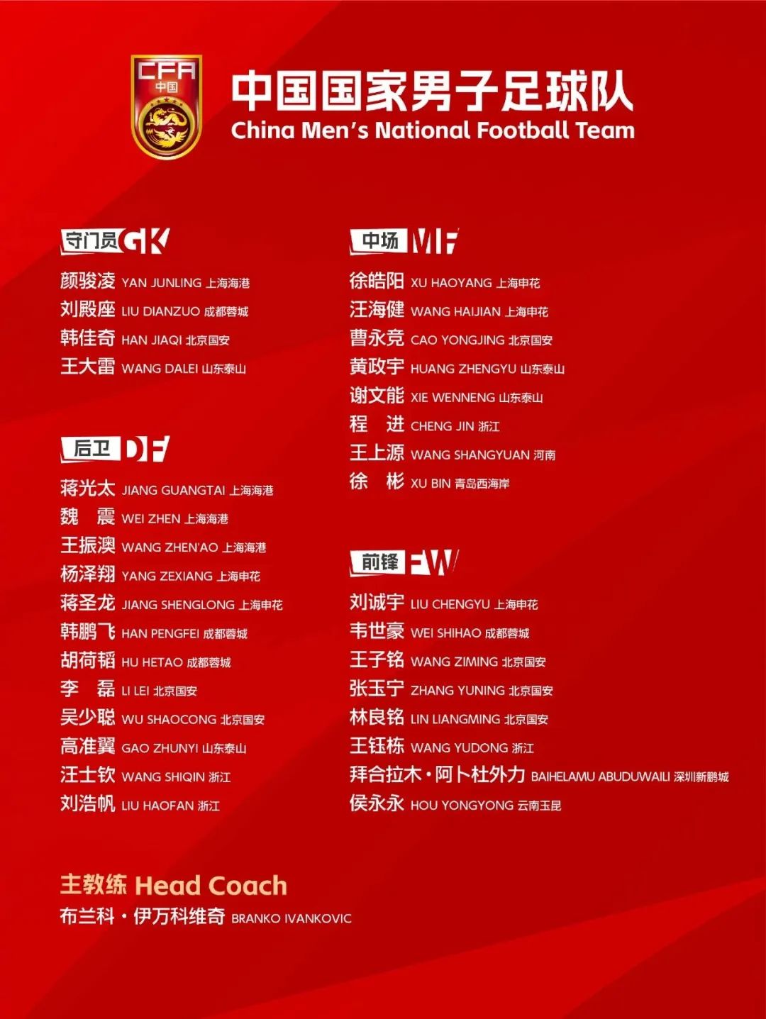 此次国家队名单高达32人,和上一期短期集训的名单相比,发生了较大的变化,其中落选的球员和新入选的球员达到了8人,落选球员分别是朱辰杰(伤病)、费南多(未参加集训)、蹇韬、吾米提江、李源一、买乌郎、陶强龙和杨立瑜,新入选的球员则是刘殿座、蒋光太、王振澳、汪士钦、刘浩帆、徐彬、王钰栋和刘诚宇。新入选的8人中,刘殿座、蒋光太和王振澳属于回归,汪士钦、刘浩帆、徐彬则是U23年龄段球员,王钰栋和刘诚宇属于刚刚参加U20亚洲杯的U20球员。