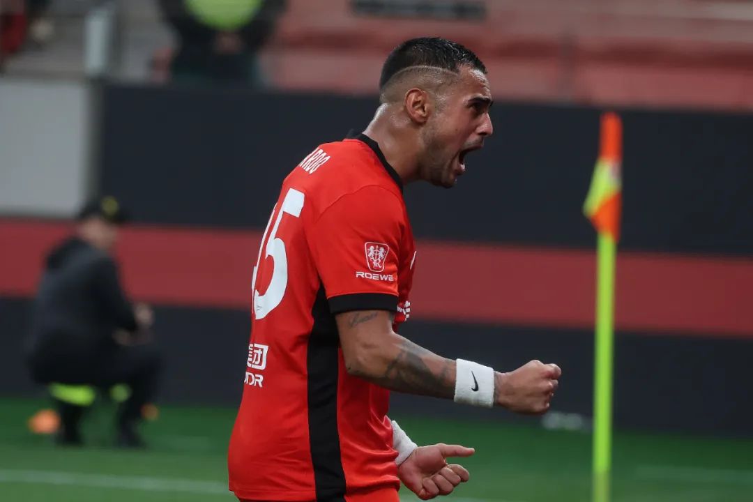 中场休息,穆斯卡特除了在锋线端提出了一些要求之外,更是特别部署了稳固防守的任务。54分钟,莱昂纳多低射打中门柱,冯劲门前补射得手,为球队取得1比0的领先优势。在这场比赛中,莱昂纳多的状态越来越好,不仅在第一个进球中有功,更是在补时阶段直接为海港锁定胜局。