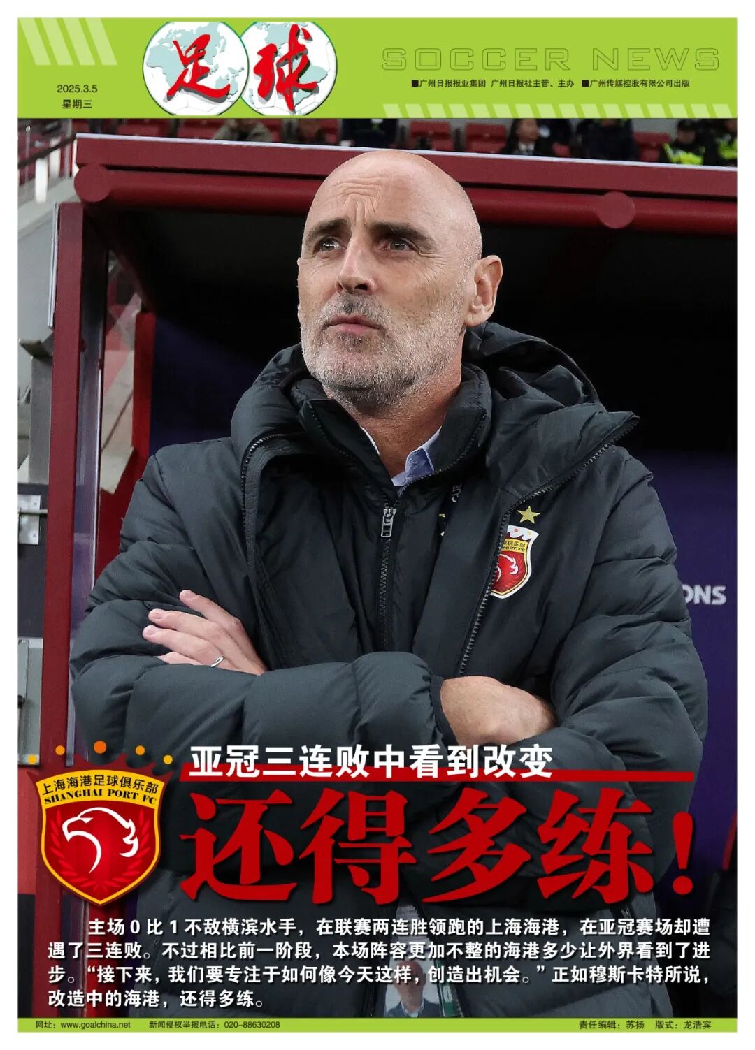 主场0比1不敌横滨水手,在联赛两连胜领跑的上海海港,在亚冠赛场遭遇了三连败。不过相比前一阶段,本场阵容更加不整的海港多少让外界看到了进步。“接下来,我们要专注于如何像今天这样,创造出机会。”正如穆斯卡特所说,改造中的海港,还得多练。