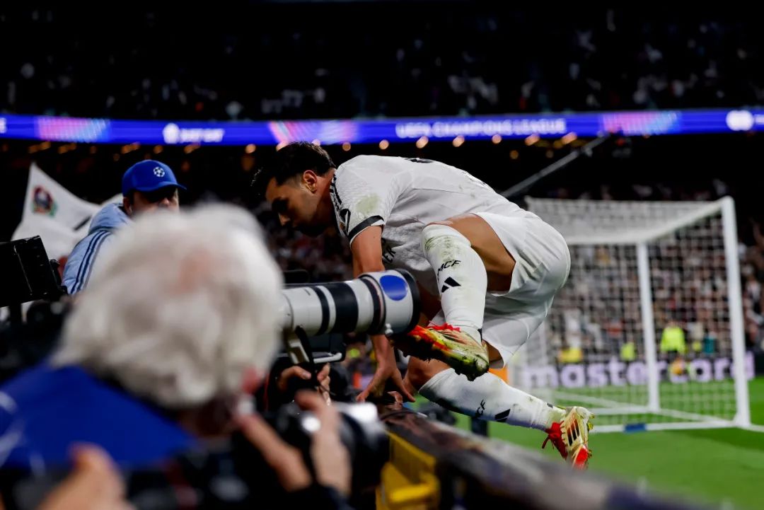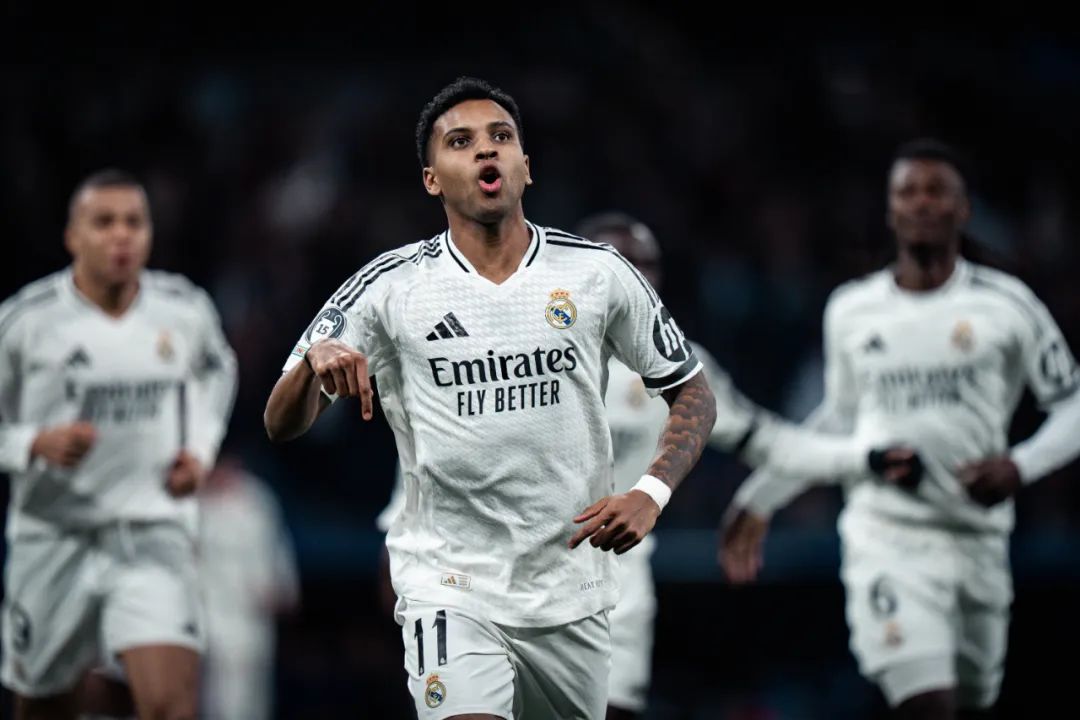 率先为皇马取得领先的是欧冠豪门杀手罗德里戈,他在开场3分25秒接巴尔韦德精准直塞,打了马竞边卫加兰一个措手不及,巴西人内切后强势兜射,让赶来围抢的5名马竞球员只能行注目礼——这是2006年3月以来,皇马在德比主场最快的进球,也为取胜奠定了基础。罗德里戈射入个人第8个欧冠淘汰赛进球,包括攻入曼城4球,切尔西3球,马竞1球。