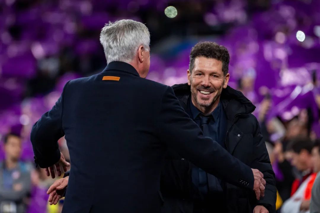 安切洛蒂和西蒙尼两位教练此役之前的26次较量同样平分秋色:各得9胜8平9负,包括2016/17赛季安切洛蒂执教拜仁时各胜1场。两位名帅都是彼此教练生涯交锋最多的教练,几乎没有秘密可言。此役双方都排出442阵型,皇马由迪亚斯顶替贝林厄姆,巴尔韦德带伤出战司职右后卫,进攻端还是姆巴佩、维尼修斯和罗德里戈三叉戟。西蒙尼则让阿尔瓦雷斯与格列兹曼首发搭档锋线,将希望寄托在“小蜘蛛”这个福将身上——阿根廷射手此前3次对阵皇马1胜2平不败。