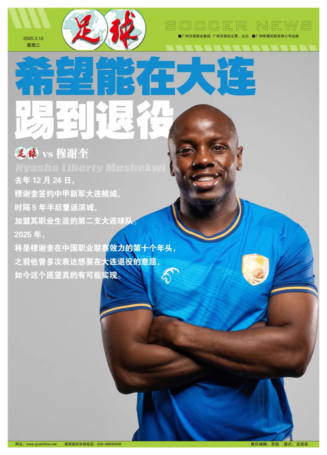 2025年将是穆谢奎在中国职业联赛效力的第十个年头,之前他曾多次表达想要在大连退役的意愿,如今这真有可能实现。