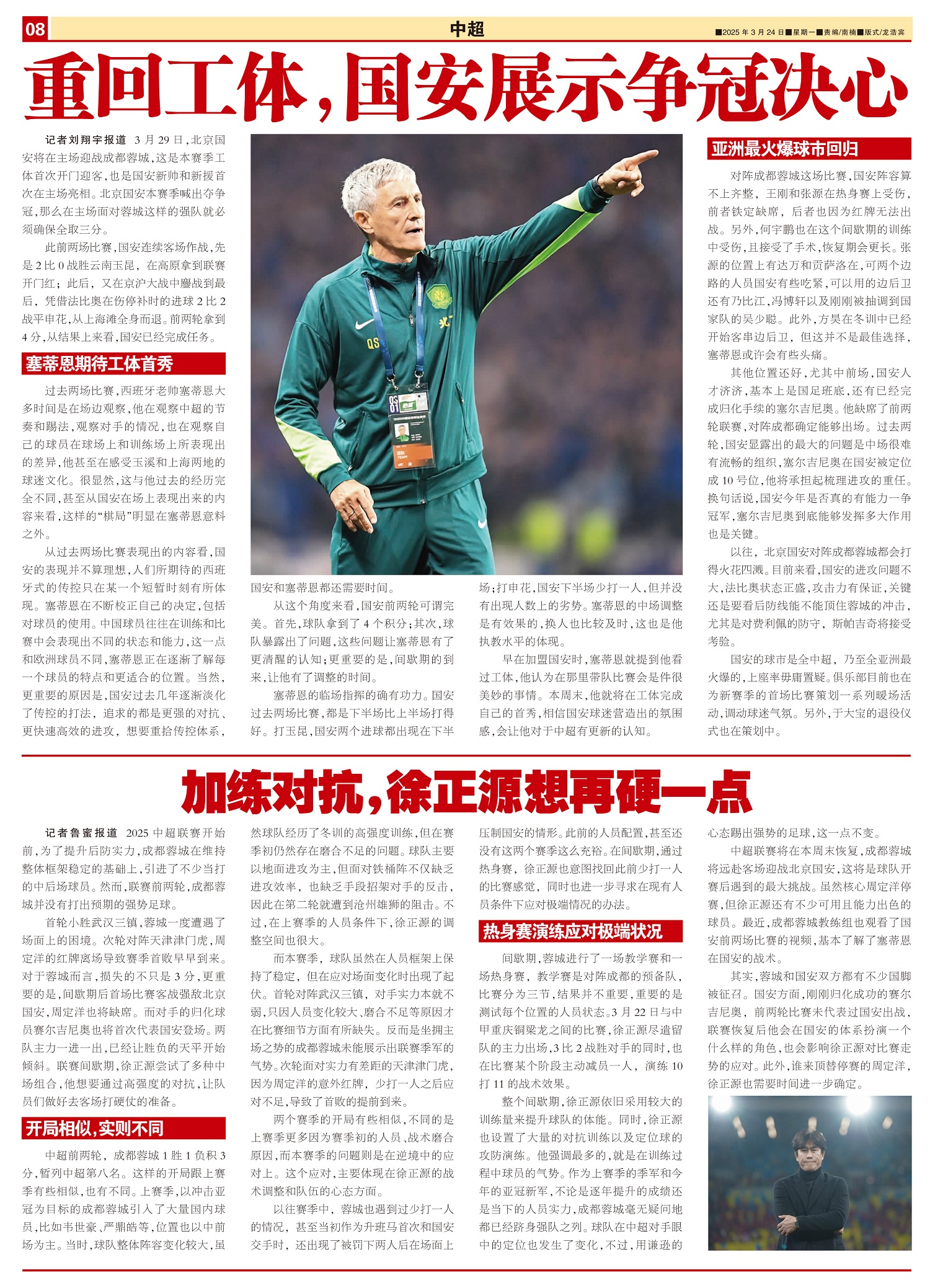 3月29日,北京国安将在主场迎战成都蓉城,这是本赛季工体首次开门迎客,也是国安新帅和新援首次在主场亮...