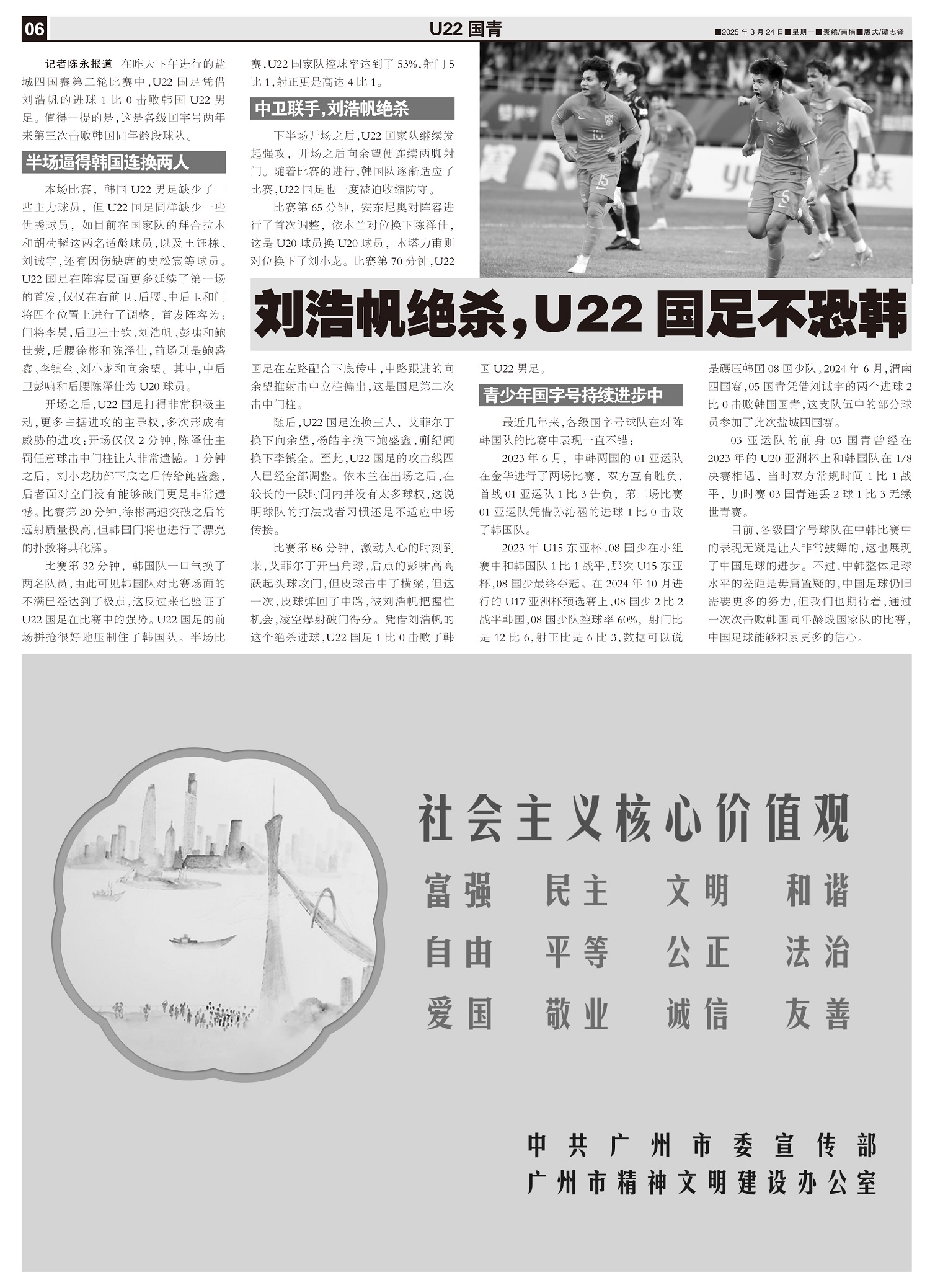在昨天下午进行的盐城四国赛第二轮比赛中,U22国足凭借刘浩帆的进球1比0击败韩国U22男足。值得一提...