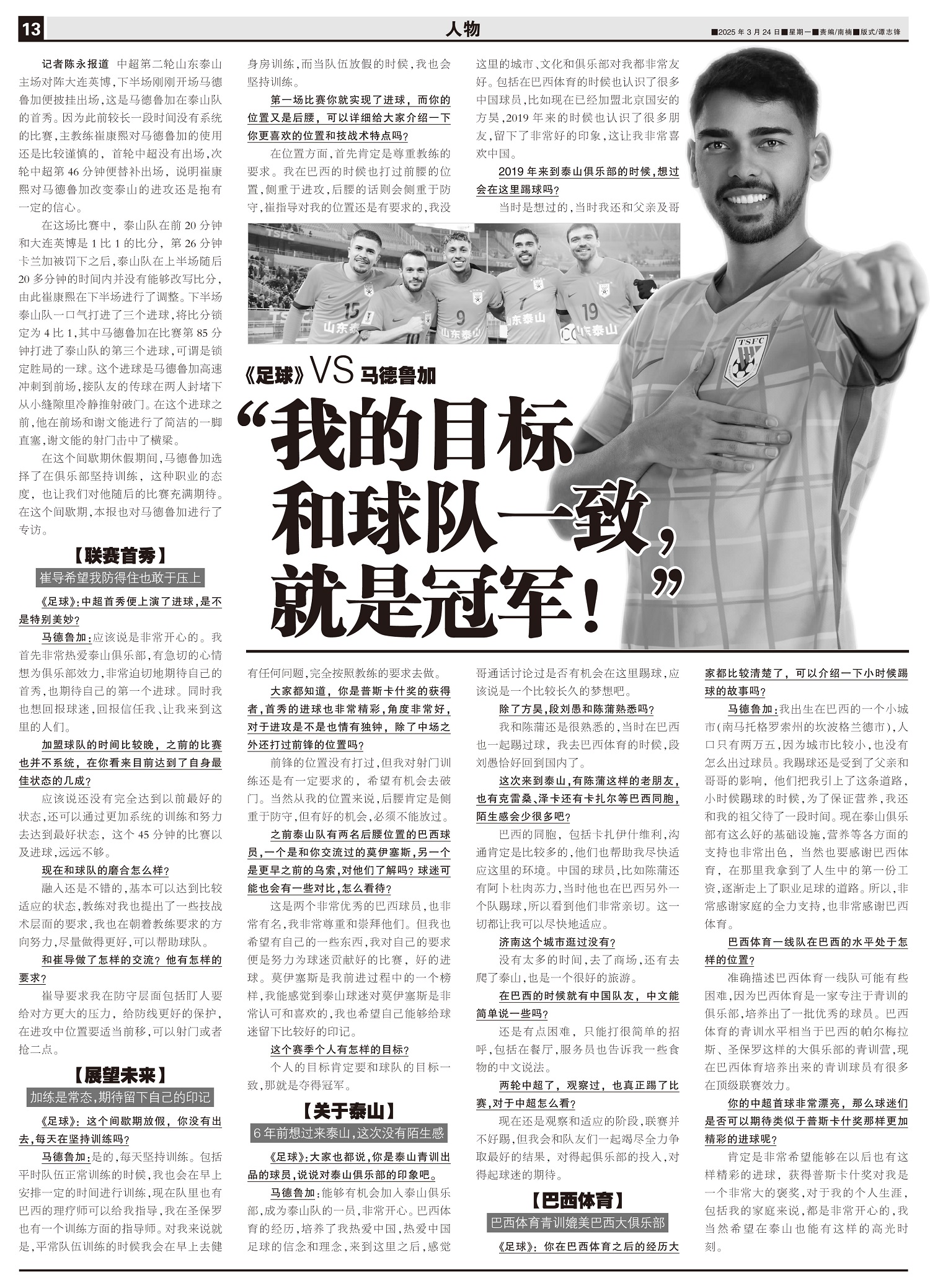 《足球》VS马德鲁加 “我的目标和球队一致,就是冠军!”