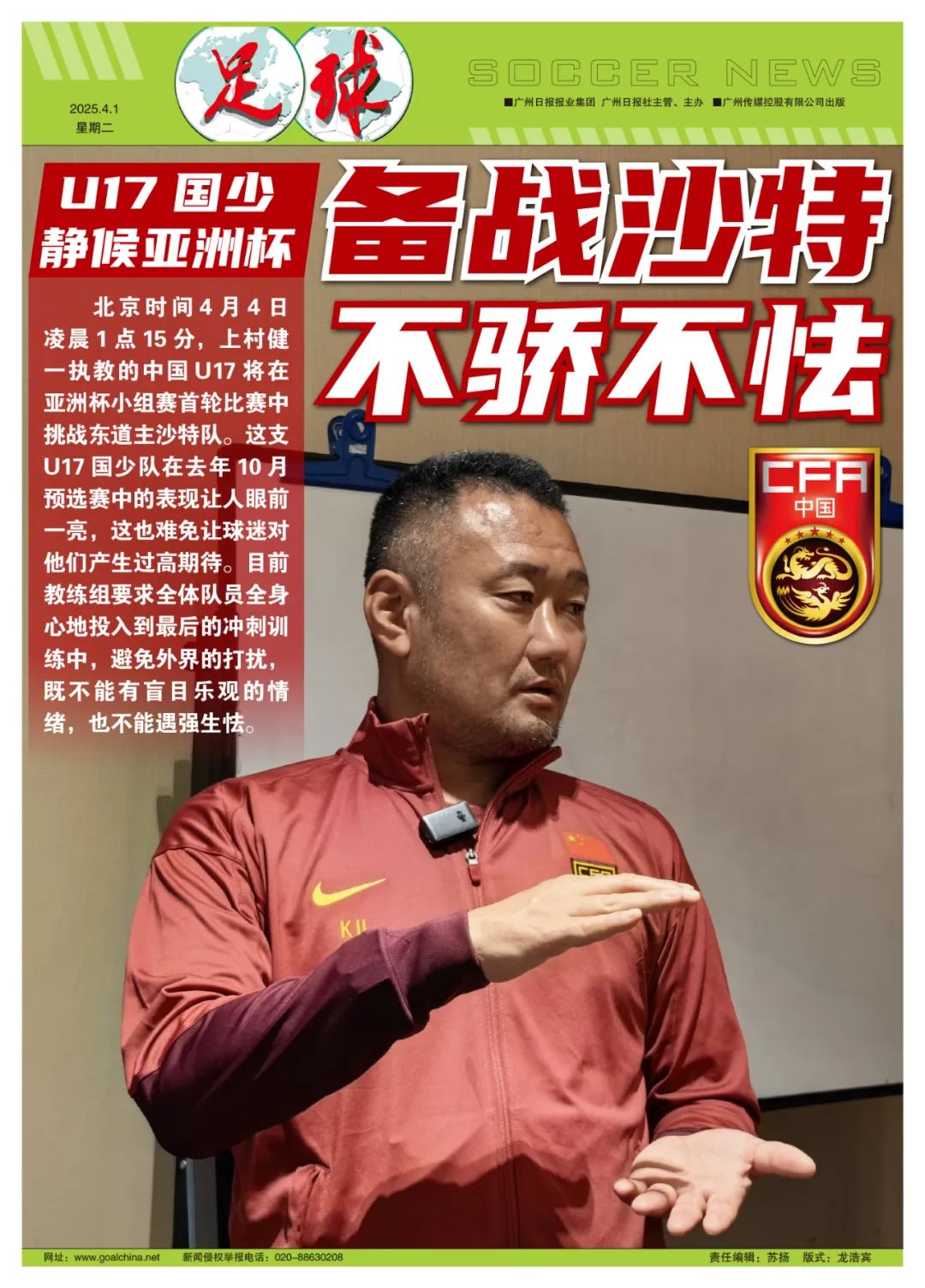 3月29日,亚足联公布了2025年U17亚洲杯16支参赛球队的23人名单。北京时间4月4日凌晨1点15分,U17国少队将在小组赛首轮比赛中挑战东道主沙特队。
