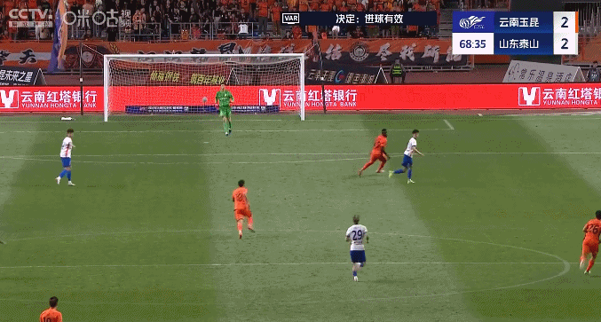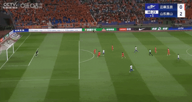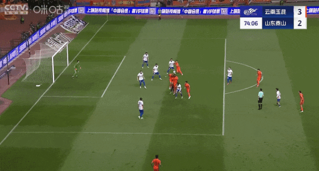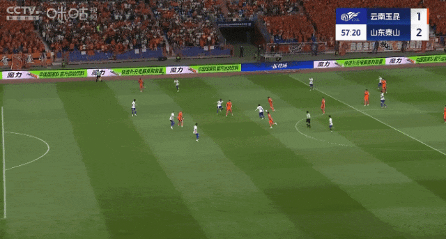 上半场一开始,客队果不其然主导了进攻。开场仅20秒,刘洋就轰出第一脚远射。5分钟后,陈蒲的远射更具威胁,被马镇飞扑挡出;第9分钟,卡扎伊什维利又在禁区前沿远射轰门;第11分钟,谢文能将球打入玉昆球门右下角——又是远射,但这次命中了目标,山东泰山先下一城。此后客队虽然起高球传中、门前抢点轰炸的套路,但让人防不胜防的还是远射。第46分钟,泽卡的远射精准命中球门左下角。客队两球领先。