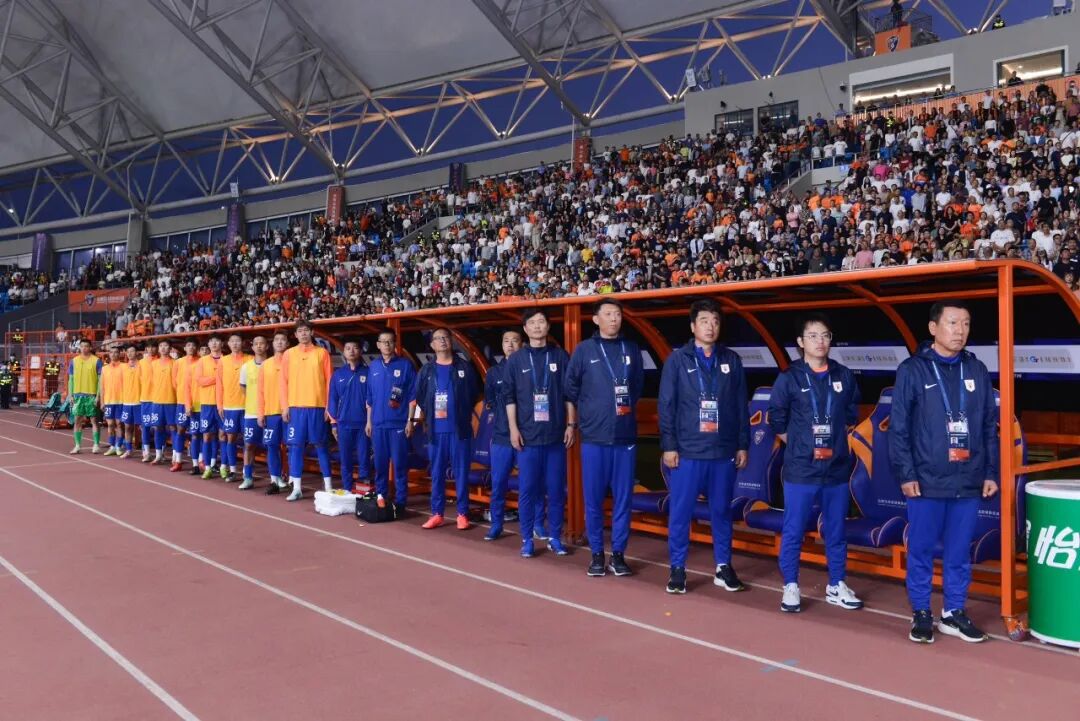 面对从“整体实力到个人能力”都显然更强大的山东泰山,主队并没有一开始就派上最强阵容与之抗衡:中场由赵宇豪、叶楚贵、内内、侯永永先发;中后卫马丁内斯在缺阵两轮后伤愈复出,弋腾、徐宏杰继续留守原先的岗位,边后卫迪力穆拉提伤停的位置由张宸梁顶替;前锋线上的变化是韩子龙搭档奥斯卡。